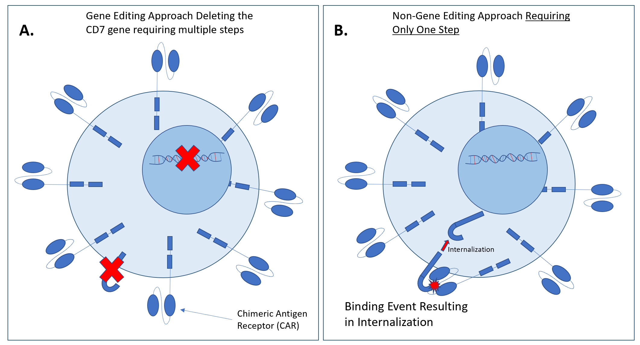 Our novel CAR T-cell constructs target CD4, CD5, and CD7 surface antigens with great accuracy and precision respectively. Our non-gene editing approach requires only one step, and results in internalization following binding. This highly efficacious approach exhibits potent cytotoxicity depleting malignant blasts while maximizing patient safety and maintaining complete remission.
