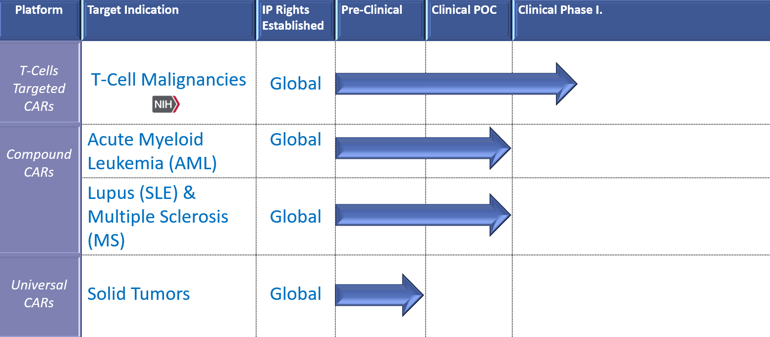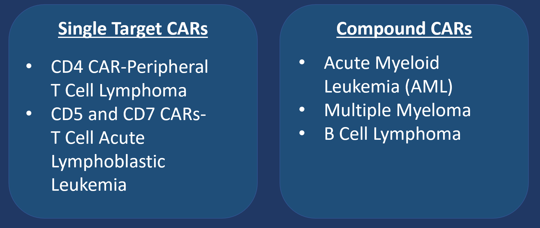 The US Food and Drug Administration has granted Orphan Drug Designation for seven of our CARs: Multiple Myeloma, Peripheral T-cell Lymphoma, Acute Myeloid Leukemia, B-Acute Lymphocytic Leukemia, and T-cell Acute Lymphocytic Leukemia.